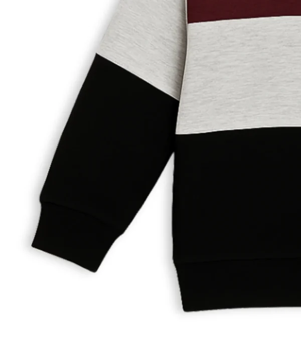 - Design: Color block pattern in horizontal panels (Maroon, Black, Light Grey).