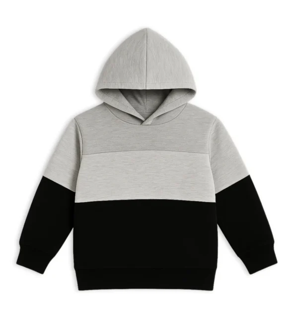 Color Block Kids Fleece Hoodie – Light Gray, Black & Grey
