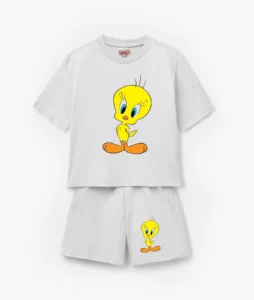 Bring the timeless charm and undeniable cuteness of Tweety Bird to your child’s wardrobe with this adorable t-shirt and shorts set! Designed for both boys and girls, this outfit features the beloved Looney Tunes character, ensuring smiles and comfortable style.